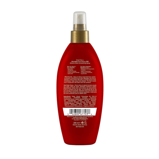 OGX 5-In-1 Benefits Frizz-Free + Keratin Smoothing Oil Miracle Gloss Smoothing Spray, 6.8 fl.oz / 200ml