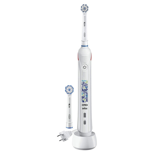 Oral-B Kids Rechargeable Electric Toothbrush with Coaching Pressure Sensor and Timer Powered by Braun, White (1 Handle, 2 Brush heads and 1 Charger)