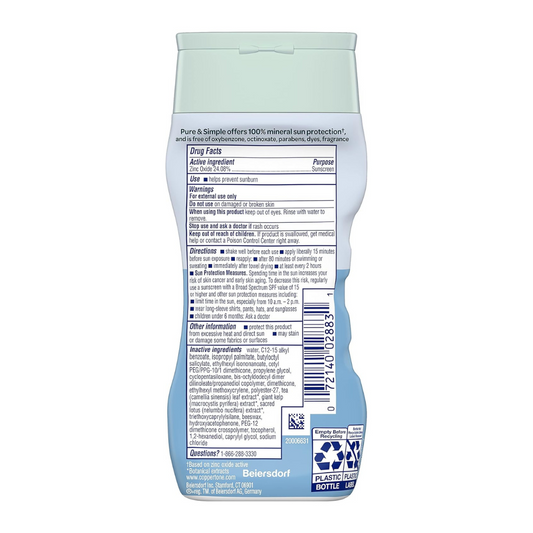 Coppertone Pure & Simple 100% Mineral Sun Protection SPF 50 Sunscreen 177ml / 6 fl oz
