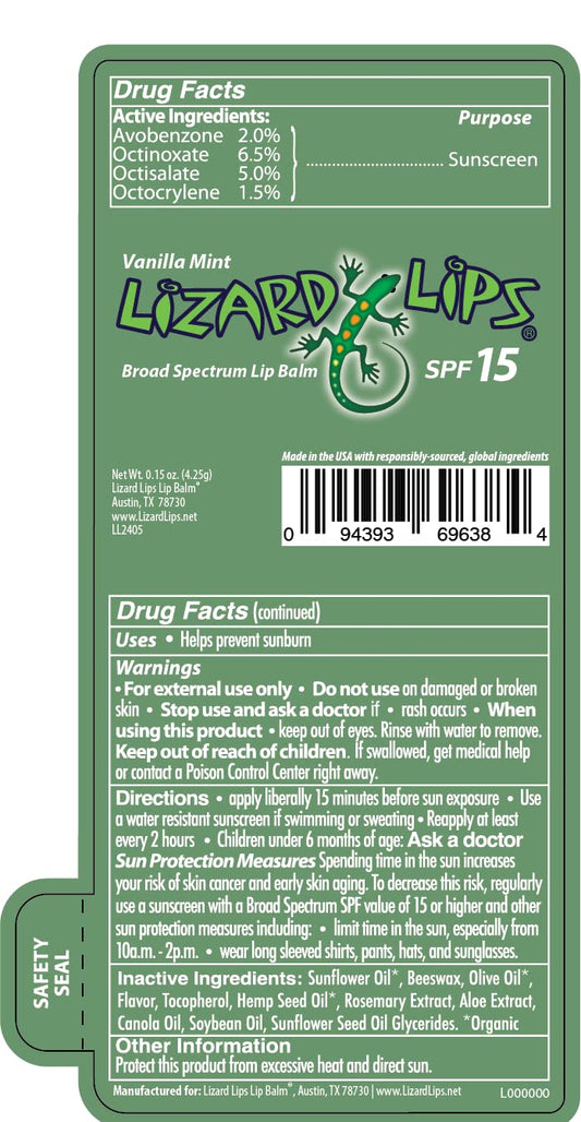 Lizard Lips Broad Spectrum Lip Balm Spf 15, 0.15 oz / 4.25g