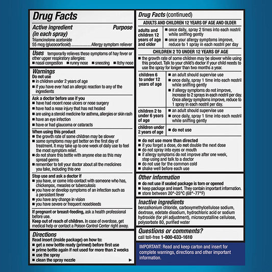 Nasacort Allergy Nasal Spray 24HR Relief, 60 Sprays (0.37 fl.oz / 10.8ml)