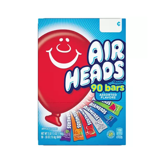 AIR HEADS Candy, Assorted Flavors, 90 Bars, 3 lb. / 1.4 kg
