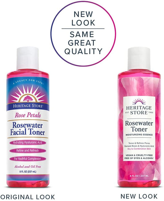 Heritage Store Rosewater Toner Moisturizing Essence with Hyaluronic Acid, 8 fl.oz / 237ml