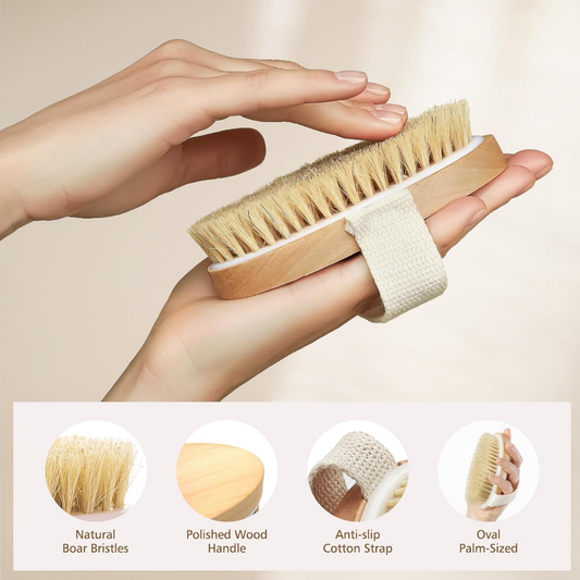 Popchose Natural Bristle Dry Body Brush Exfoliating & Cellulite Treatment