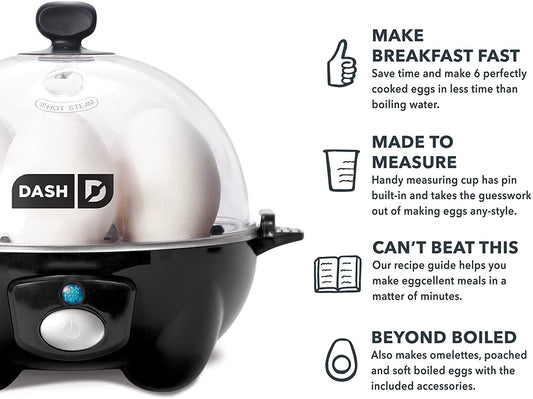 DASH Rapid 6 Capacity Electric Cooker for Hard Boiled, Poached, Scrambled Eggs, or Omelets with Auto Shut Off Feature, One Size, Black