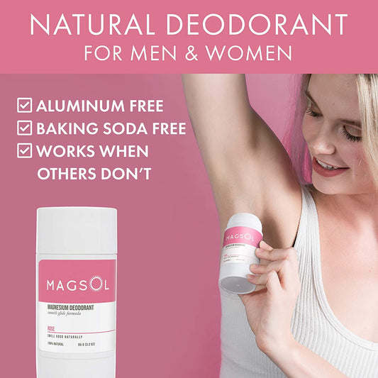 MAGSOL Magnesium 100% Natural Deodorant for Men & Women, Rose, 3.2 oz. / 95g