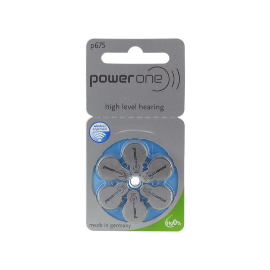 Power One Mercury Free Size p675 Hearing Aid Batteries, 6 Pack