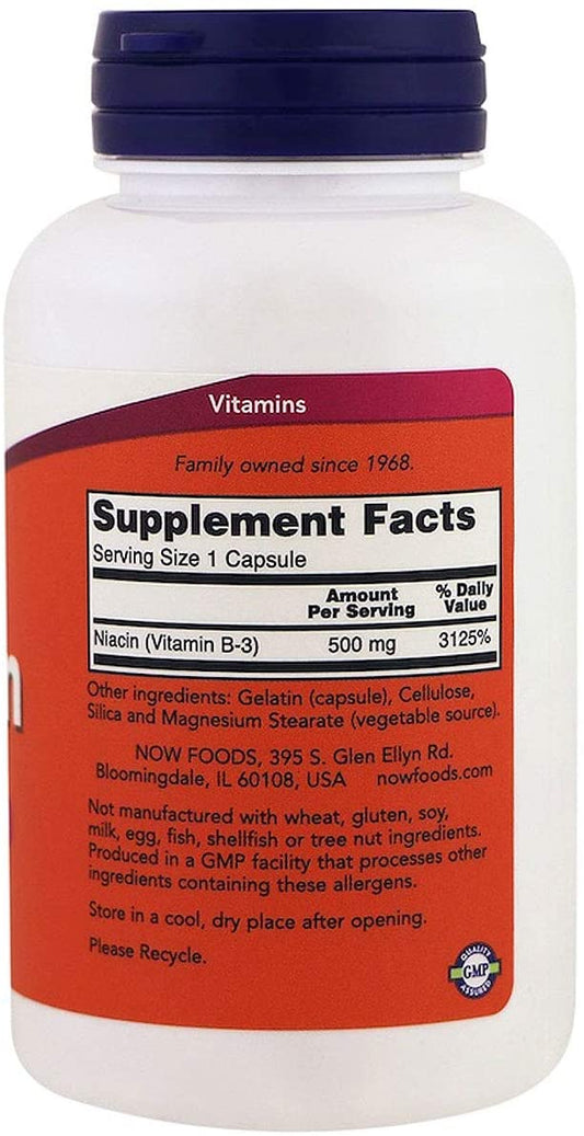 Now Foods Niacin 500mg, Vitamin B-3, 100 Capsules