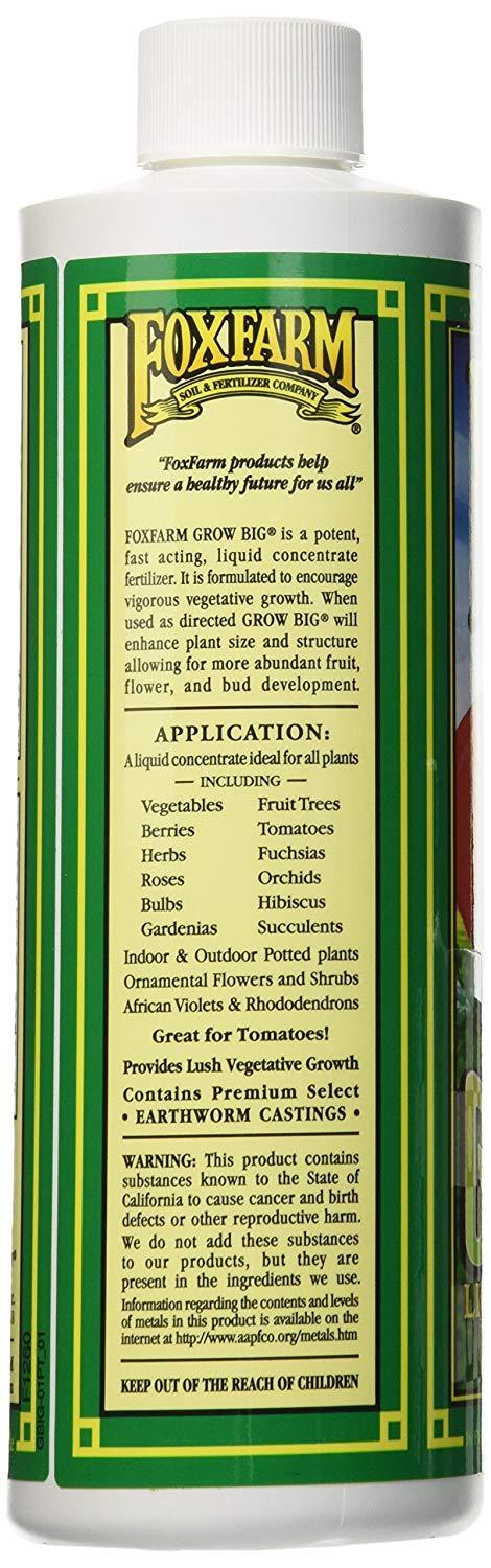 Fox Farm 6-4-4, 1-Pint FX14092 Grow Big Liquid Plant Food Concentrate Fertilizer , Soil NPK 6-4, White