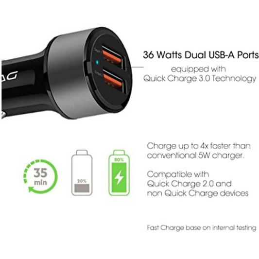 iRAG 36W 2-Port USB Car Charger with 6FT Braided USB Type C to A Fast Charging Cable Cord