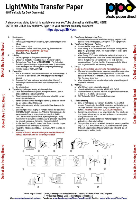 PPD Inkjet PREMIUM Iron-On White T-Shirt Transfers Paper, LTR 8.5x11” Pack of 10 Sheets