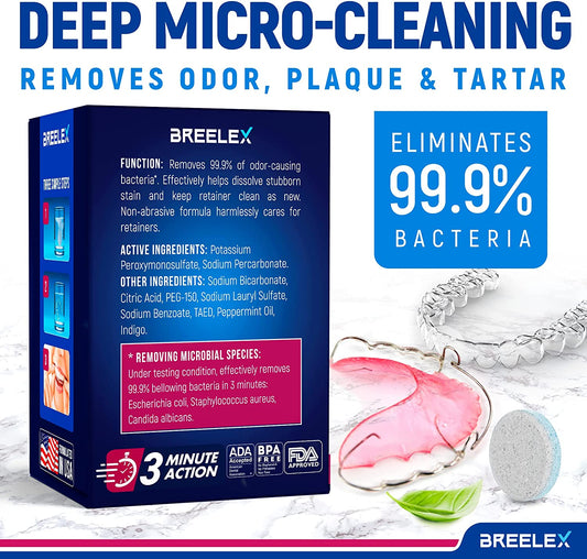 Breelex Denture Cleaning Tablets Deep Micro-Cleansing, 120 Tablets for 4 Full Months