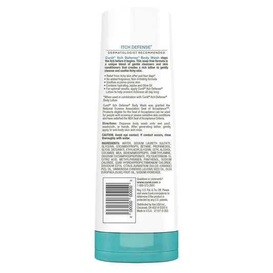 Curél Itch Defense Calming Daily Cleanser, Body Wash with Hydrating Jojoba and Olive Oil, 10 fl.oz