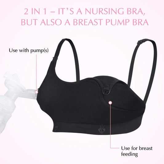 Momcozy Hands Free Pumping Bra Adjustable Breast-Pumps Holding and Nursing Bra, Suitable for Breastfeeding-Pumps by Lansinoh, Philips Avent, Spectra, Evenflo and More (Black, Small)
