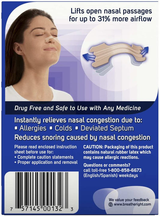 Breathe Right Original Nasal Strips For Nasal Congestion Relief, 30 Large Tan Strips