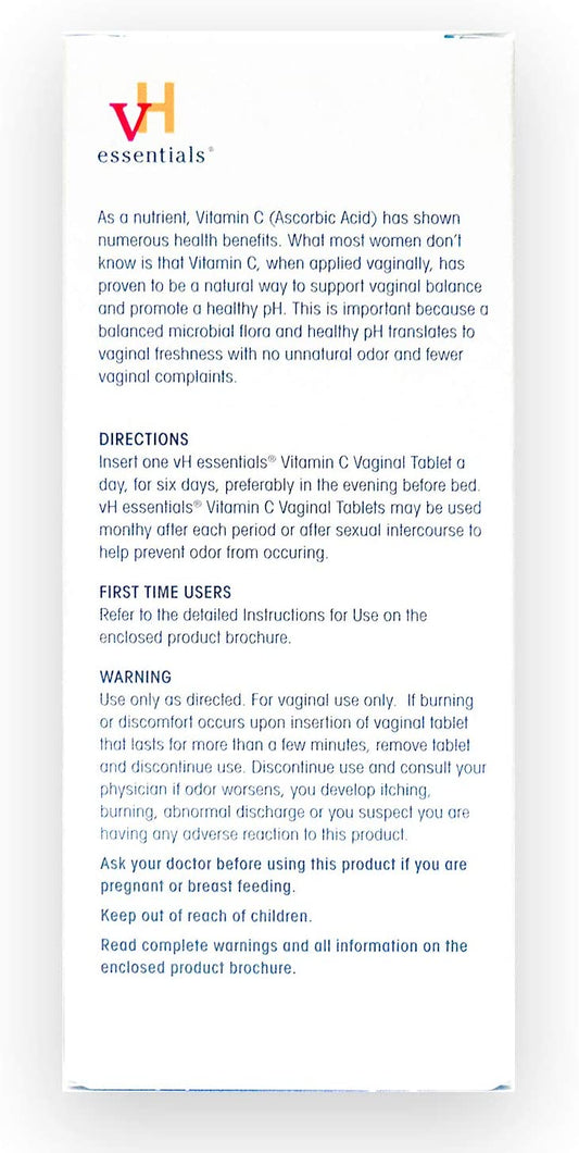 vH essentials Vitamin C Vaginal Tablet 250mg, 6 Tablets with 1 Reusable Applicator Supports Healthy pH & Eliminates Odor Naturally