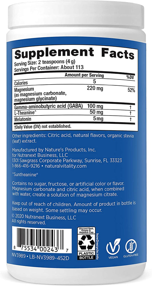 Natural Vitality Calm Sleep Magnesium Supplement with Melatonin & GABA Sleep Drink Mix, Mixed Berry Flavor, 16 oz. / 453 g