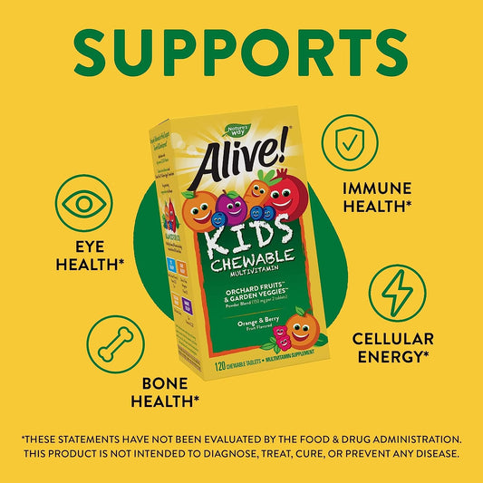 Natures Way Alive Kids Chewable Multivitamins, Orange And Berry Flavor, 120 Chewable Tablets
