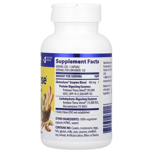 Enzymedica GlutenEase Digestive Enzymes Vegan & Kosher, 120 Capsules