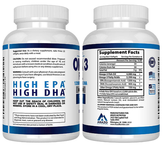 Arazo Nutrition Omega 3 Fish Oil 2250mg (120 Count)