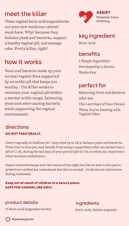 Love Wellness The Killer, Boric Acid Suppositories, 14 Count Suppositories