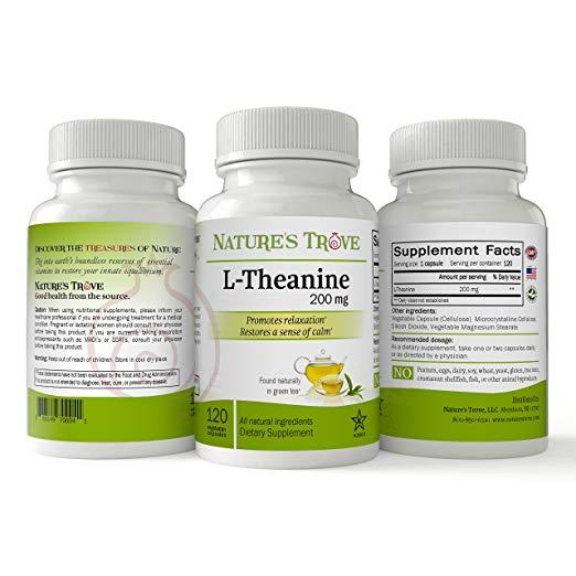 L-Theanine 200mg by Nature's Trove - 120 Vegetarian Capsules