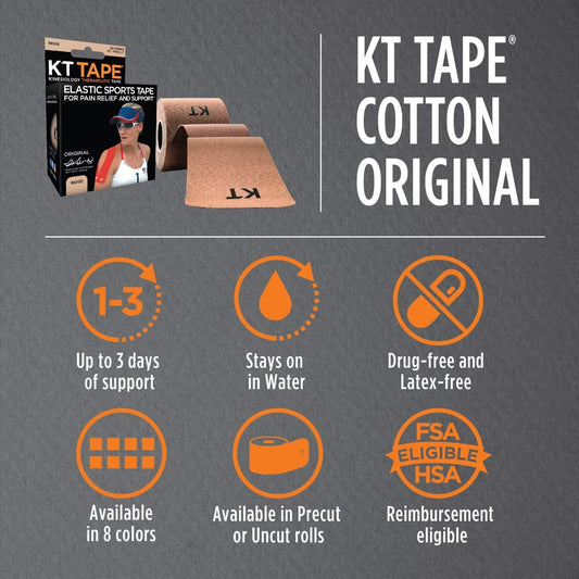 KT Tape Original Cotton Elastic Kinesiology Therapeutic Athletic Tape, 2" x 10" Black, 20 Strips