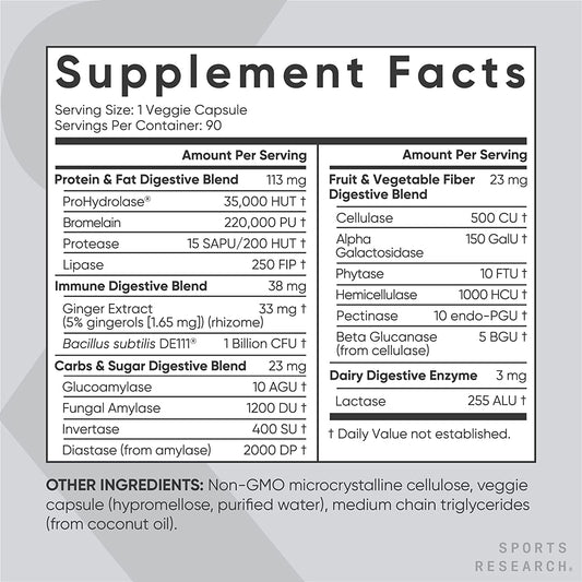 Sports Research Plant-Based Digestive Enzymes Helps Ease Digestion - 90 Veggie Capsules