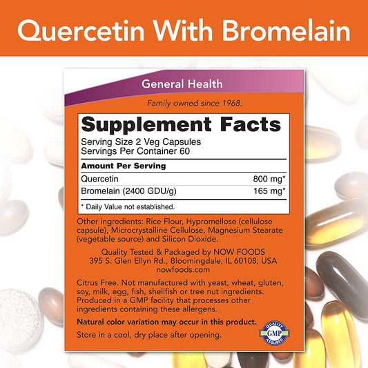 NOW Quercetin with Bromelain, Balanced Immune System, 120 Veg Capsules