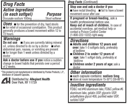 HealthA2Z Stool Softener Docusate Sodium 100mg, 100 Capsules