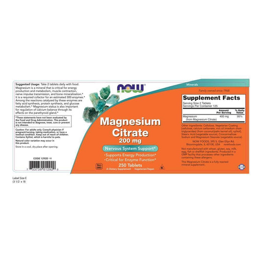 NOW Magnesium Citrate 200 mg (250 Tablets)