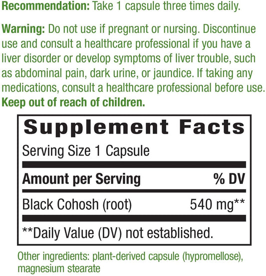 Nature's Way Black Cohosh Root 540 mg Per Serving, 180 Vegetarian Capsules