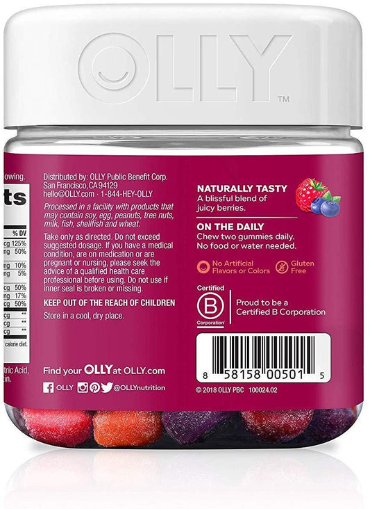 OLLY The Perfect Womens Gummy Multivitamin, Blissful Berry, Vitamins A, D, C, E, Biotin, Folic Acid (90 Gummies)