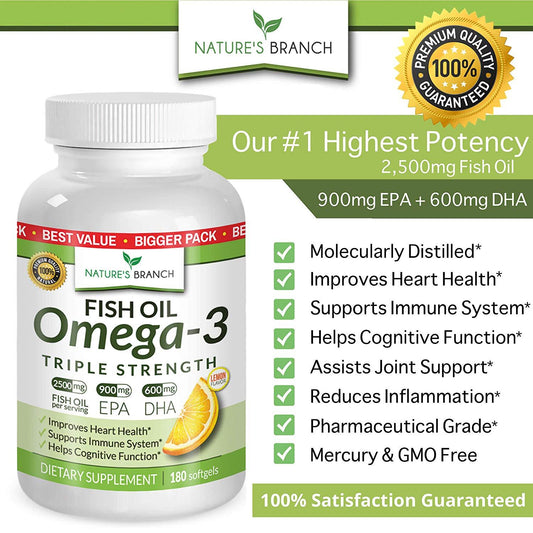 Natures Branch Fish Oil Omega-3 Triple Strength, Lemon Flavor 180 Softgels