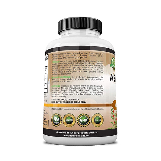 NaturaLife Labs Organic Ashwagandha 2,100 mg 100 Veggie Capsules