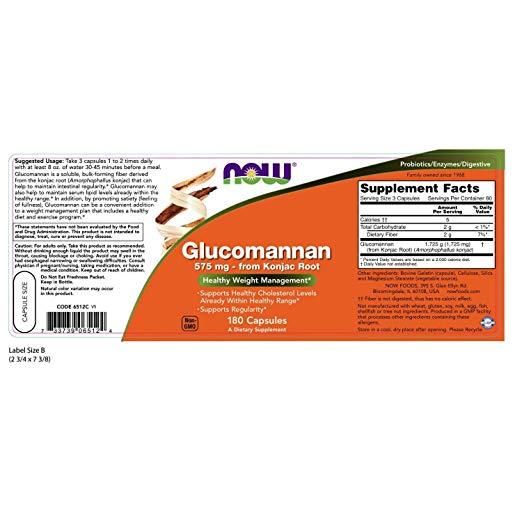 NOW Supplements, Glucomannan (Amorphophallus konjac) 575 mg, 180 Capsules