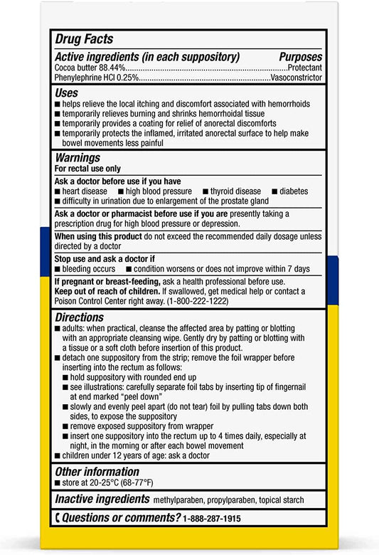 Equate Hemorrhoidal Suppositories Soothing & Nighttime Relief, 24 Suppositories