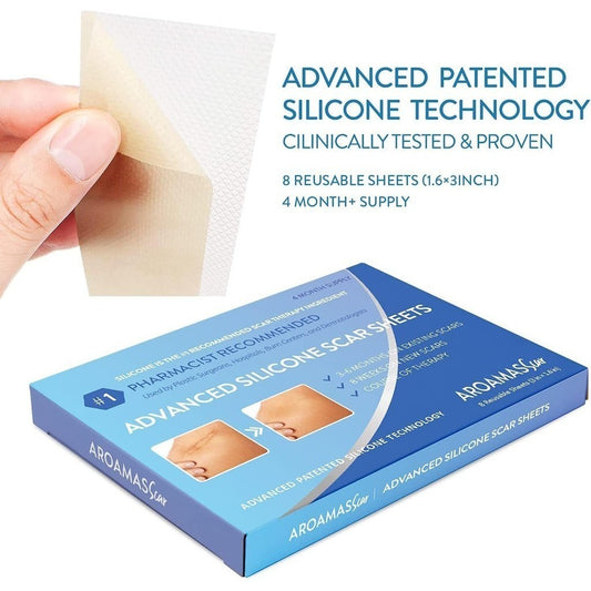 Aroamas Scar Advanced Silicone Scar Sheets (3 inch x 1.6 inch) 8 Reusable Sheets
