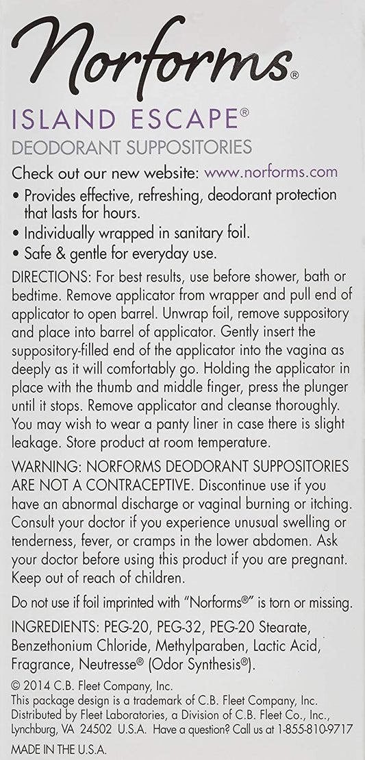Norforms Island Escape, Long Lasting Feminine Deodorant Suppositories, 12 ct