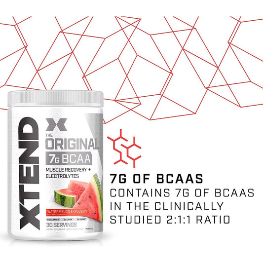 Xtend The Original 7g BCAA Muscle Recovery + Electrolytes Zero Sugar, Watermelon Explosion - 30 ct