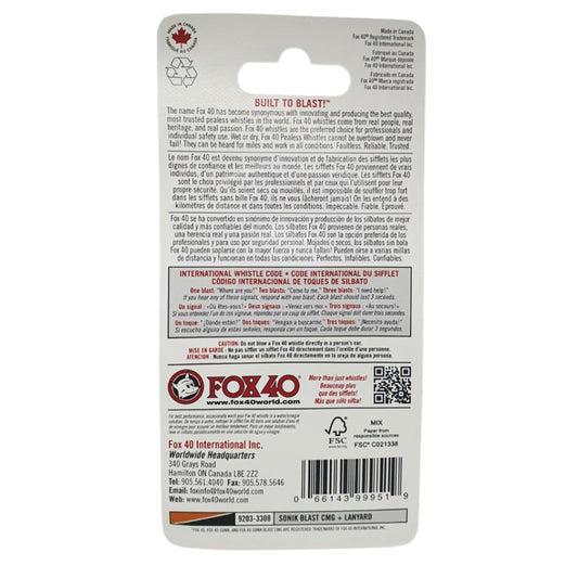 Fox 40 Sonik Blast Pealess Whistle (120 db) Black & Orange
