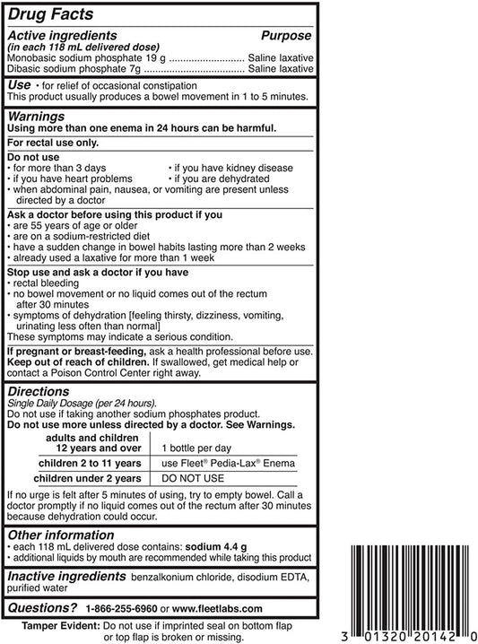 Fleet Laxative Saline Enema Fast Relief In Minutes Hydrates & Softens 2 Bottles - 133ml Each