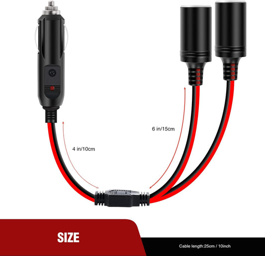 Nilight Car Cigarette Lighter Splitter Plug Socket 2-Way Splitter Splits 1 Car Cigarette Port to 2 DC Ports (10025W)