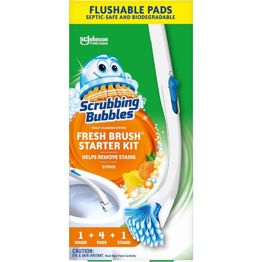 SC Johnson Scrubbing Bubbles Toilet Cleaning System 1 Wand, 4 Pads, 1 Stand, Citrus Scent
