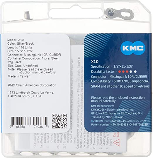 KMC X10-116L Speed Bicycle Chain 1/2" X 11/128"