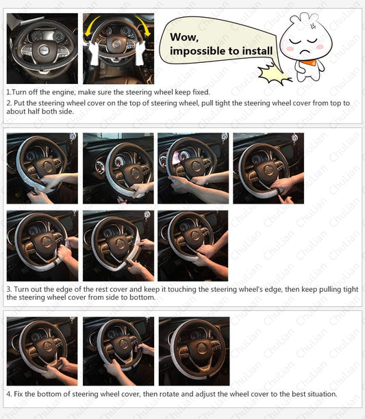 ChuLian New Diamond Leather 15 Inch Car Steering Wheel Cover With Crystal Rhinestones Black 1 Count