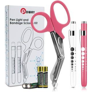 Opoway Pen Light with Pupil Gauge LED light for Doctor Nurse 2 Count Pink and White FREE 2 BATTERIES