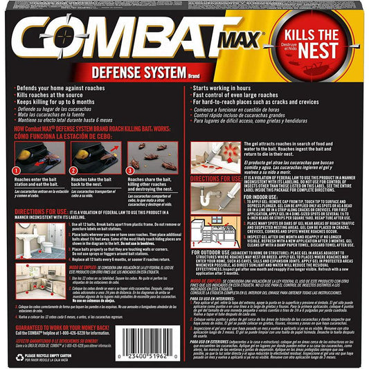 Combat Max Defense System Brand, Small Roach Killing Bait and Gel, 12 Counts
