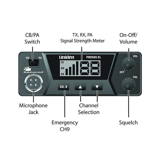Uniden PRO505XL 40-Channel CB Radio, Pro-Series, Compact Design, Instant Emergency Channel 9, Black
