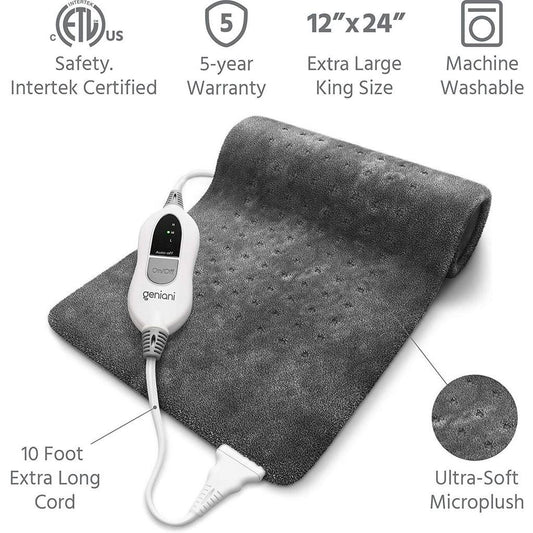 GENIANI Extra Large Electric Heating Pad, Soft Heat Pad for Moist & Dry Therapy (Tabby Gray)